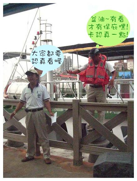 紛紛滴將救生衣給穿好並且等待海巡署的檢查